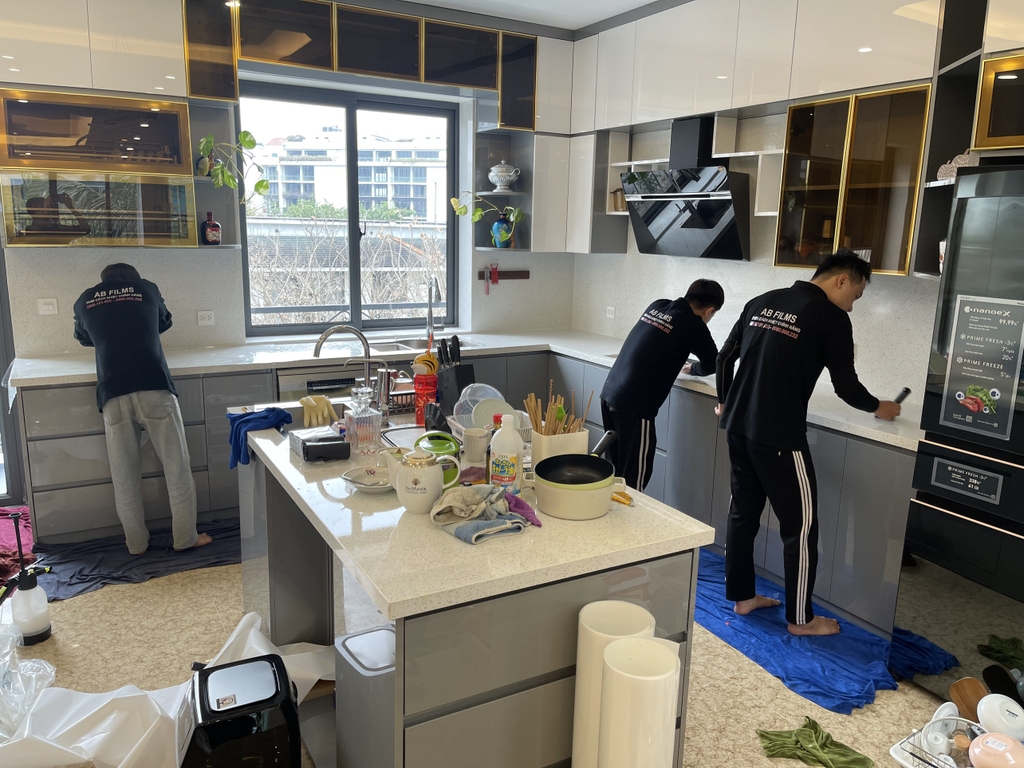 Đội ngũ AB Films tiếp tục thi công dán phim bảo vệ Silikante cho khách hàng tại khu biệt thự Marina Ecopark trong ngày chủ nhật. Dù là ngày thứ hay ngày nghỉ, ngày lễ tết hay bất kể ngày nào đi chẳng nữa. Chỉ cần khách hàng cần AB Film sẽ luôn có mặt.
