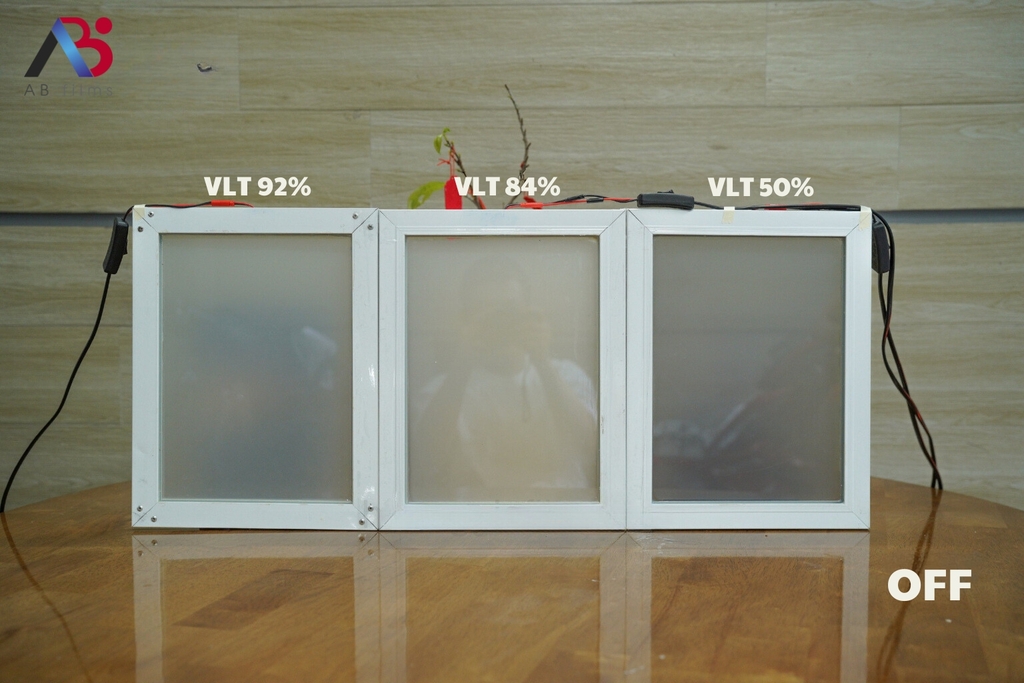 Hiện tại, AB Films đang cung cấp và thi công 3 loại phim điện thông minh với 3 màu khác nhau, là những màu đang được khách hàng ưa chuộng nhất là: trắng siêu trong, trắng trong và xám trung tính.