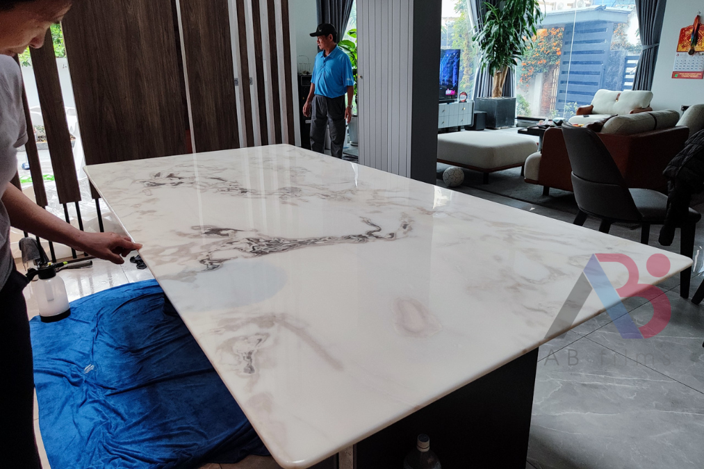Dòng phim Silikante Pro là dòng phim thương hiệu Silikante cao cấp, được nghiên cứu chuyên sâu dành riêng cho nội thất. Hôm nay kỹ thuật AB Films thực hiện thi công dán phim bảo vệ cho khách hàng với các hạng mục: bàn ăn, khu vực đá bếp.