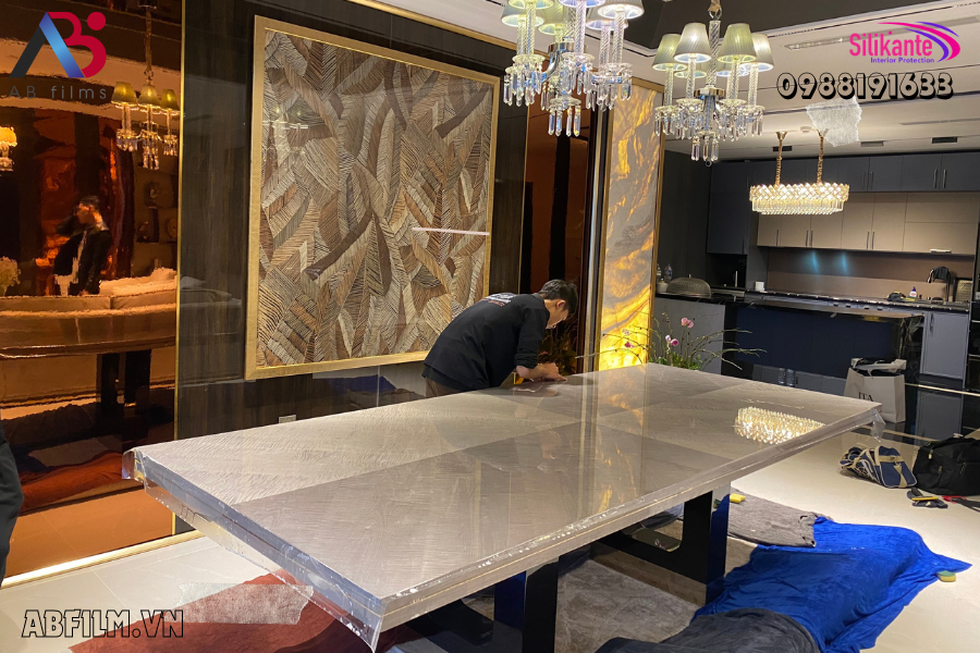Công trình dán phim bảo vệ mặt bàn đá cho khách hàng tại tòa Sun Plaza Thụy Khuê. Dòng phim được dán là dòng phim Silikante Luxury của công ty AB Films. Mã phim này có tác dụng chống trầy xước vượt trội, tự đàn hồi vết xước và chịu nhiệt cao, phù hợp cho những chiếc bàn ăn, bàn bếp và khu vực kệ bếp.